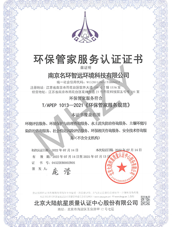 南京名環(huán)智遠(yuǎn)環(huán)境科技有限公司 南京名環(huán)智遠(yuǎn)環(huán)境科技有限公司定位為專業(yè)生態(tài)環(huán)境技術(shù)服務(wù)提供商,基于先進(jìn)的生態(tài)與環(huán)境保護(hù)技術(shù)研發(fā)、應(yīng)用和綜合服務(wù)能力,為客戶提供生態(tài)與環(huán)境保護(hù)領(lǐng)域的管理與技術(shù)咨詢服務(wù)、環(huán)境工程全流程綜合解決方案以及環(huán)保高新技術(shù)成果轉(zhuǎn)化與產(chǎn)業(yè)化運(yùn)作,致力于為政府、園區(qū)和企業(yè)提供生態(tài)保護(hù)與污染防治“全過程”、“全方位”、“全覆蓋”的一站式綜合服務(wù)。公司目前是中國環(huán)境保護(hù)產(chǎn)業(yè)協(xié)會、中國環(huán)境科學(xué)學(xué)會、江蘇省環(huán)境保護(hù)產(chǎn)業(yè)協(xié)會、江蘇省環(huán)境科學(xué)學(xué)會土壤和地下水修復(fù)專業(yè)委員會、江蘇省水土保持學(xué)會、南京市環(huán)境保護(hù)產(chǎn)業(yè)協(xié)會等協(xié)會理事和南京市政法委重大決策社會穩(wěn)定性評估機(jī)構(gòu)。公司目前已取得若干專利,通過了質(zhì)量、環(huán)境和職業(yè)健康管理體系認(rèn)證和高新技術(shù)企業(yè)認(rèn)定,在技術(shù)研發(fā)、業(yè)務(wù)實踐應(yīng)用等方面形成了雄厚的積累。 公司作為“政府環(huán)保智庫、園區(qū)環(huán)保顧問、企業(yè)環(huán)保管家”,南京名環(huán)智遠(yuǎn)為各級政府、園區(qū)、3000余家企業(yè)提供了污染防治與生態(tài)保護(hù)綜合服務(wù)和解決方案,具體包括水污染治理、大氣污染治理、土壤修復(fù)、固體廢物處置、環(huán)境影響評價、節(jié)能評估、可行性研究、環(huán)境規(guī)劃、環(huán)保驗收、清潔生產(chǎn)、危廢鑒別等。